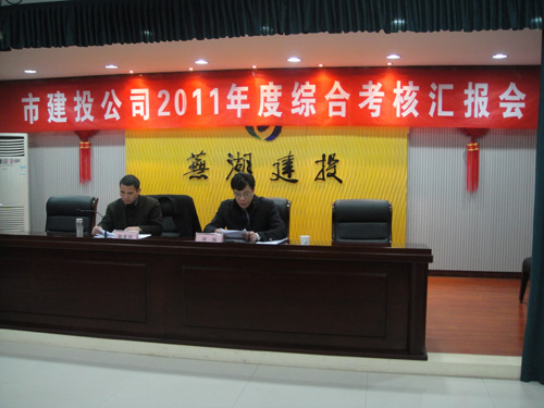 2月20日下午,市建投公司領導班子2011年度綜合考核匯報會議在公司負一樓大會議室召開,會議由公司總經理劉楊主持。市委組織部副調研員、組織科科長顏新權率考核小組出席會議。公司全體員工參加會議。會議首先由顏組長對綜合考核工作進行安排部署,隨后由劉總代表公司領導班子作年度述職報告。